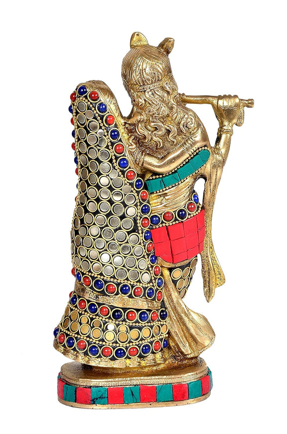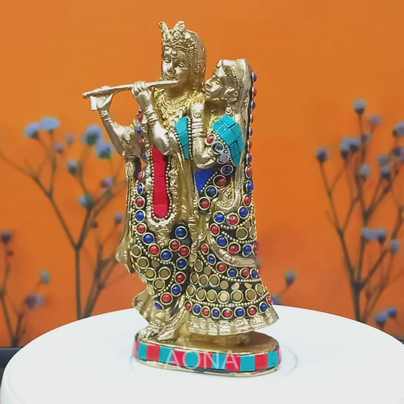 Brass Radha Krishna Idol with Stone Work (Height 8.5 Inches)