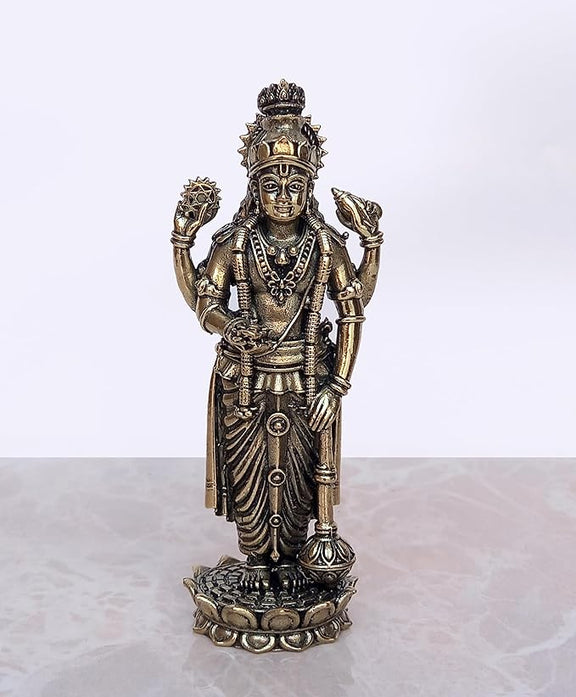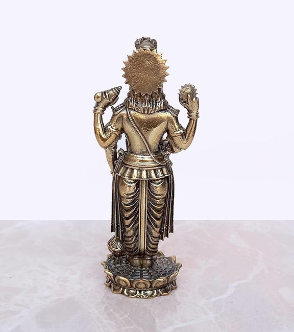 Fine Brass Lord Vishnu Idol Statue for mandir Temple Showpiece, (Height 4 Inch)
