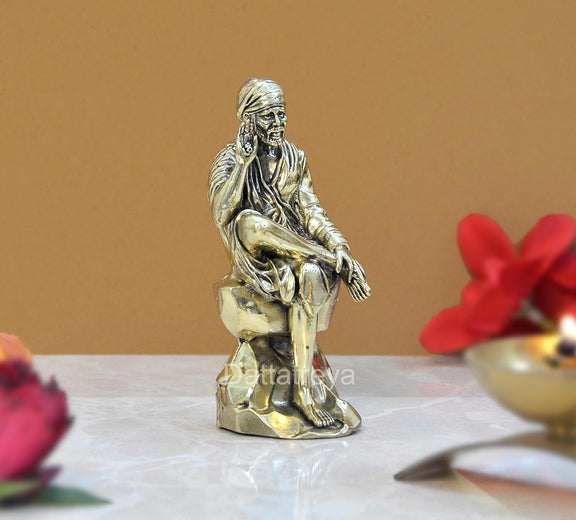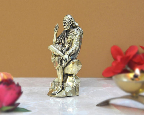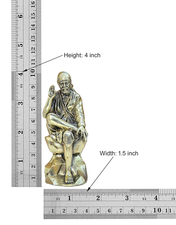 Fine Brass Shirdi Sai Baba Statue Idol Sai Baba Religious Statue for Home Decor Mandir Pooja (Height: 4 Inch)