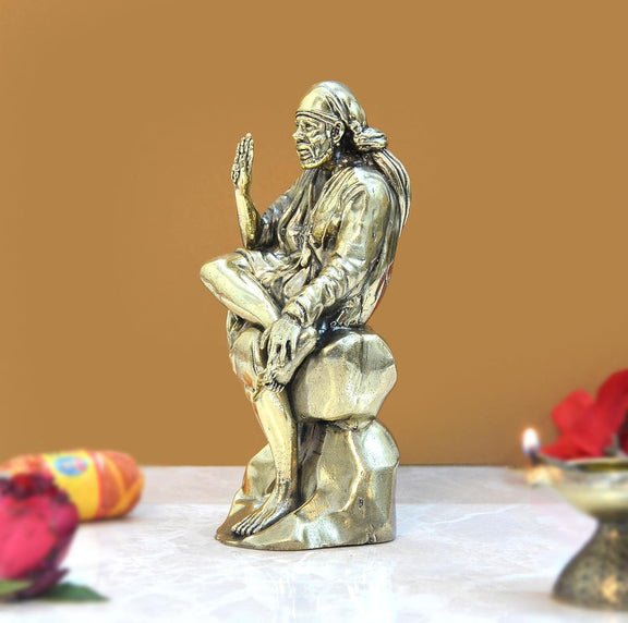 Fine Brass Shirdi Sai Baba Statue Idol Sai Baba Religious Statue for Home Decor Mandir Pooja (Height: 5 Inch)