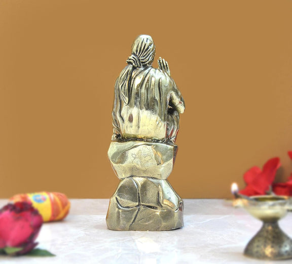 Elevate your spiritual space with this stunning 5 inch Fine Brass Shirdi Sai Baba statue. Handcrafted with intricate detailing, this religious idol emanates a serene energy and serves as a beautiful home decor piece. Perfect for poojas and meditation, it's a must-have for all Sai Baba devotees