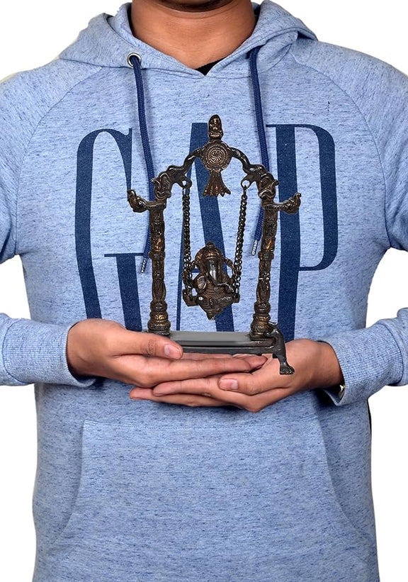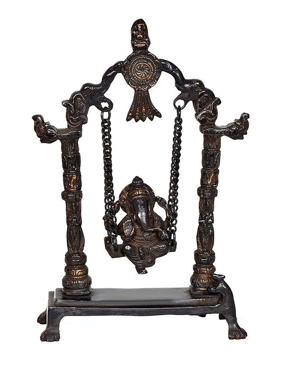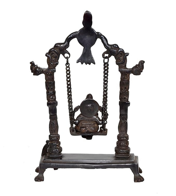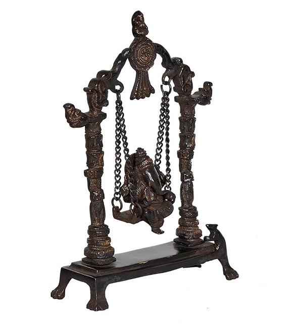 Ganesha Playing On Swing Brass Statue Idol, (Height 9 Inch)