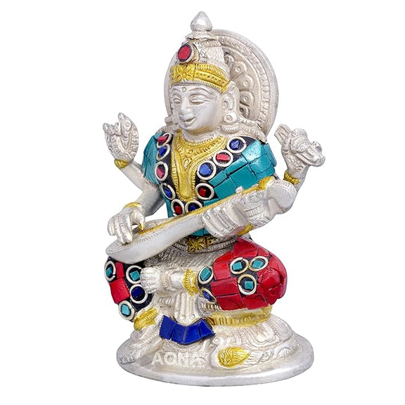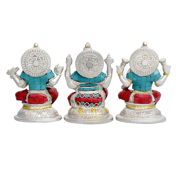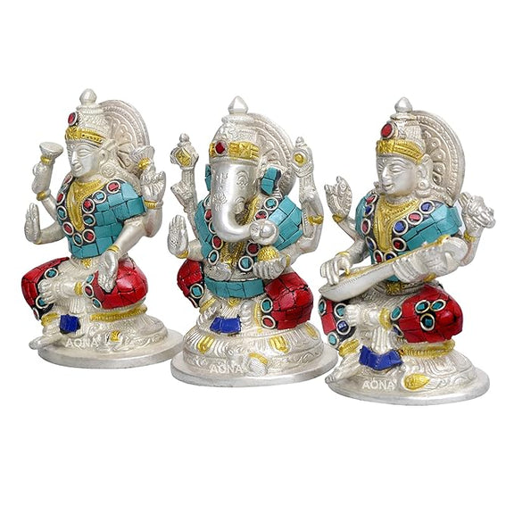 Goddess Lakshmi Ganesha Saraswati Brass Idol Lakshmi Ganesh Murti Height 5 Width 3.5 Inches