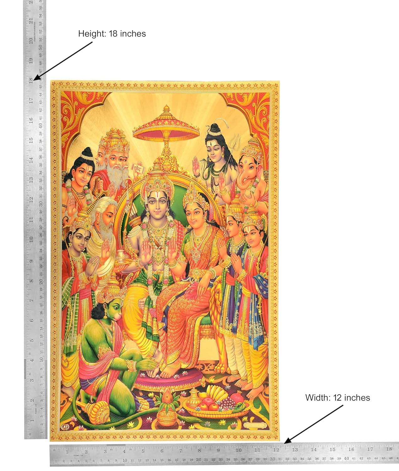 Gold Foil Plated Ram Darbar Wall Poster (Height 18 Inch X Width 12 Inch)