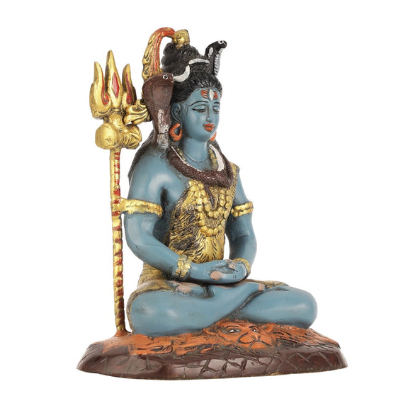 Handcrafted Brass Lord Shiva Statue Hand Painted (Height:10.5 Inches)