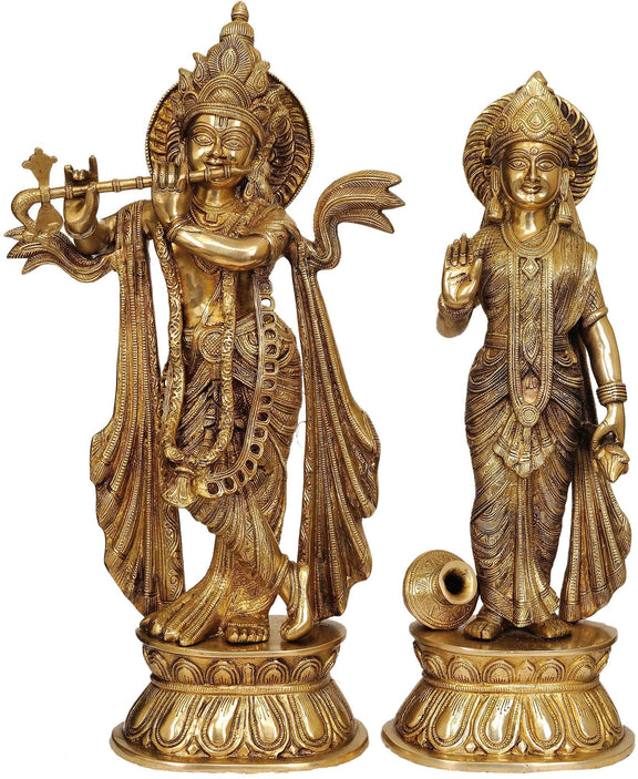 Handcrafted Brass Statue of Lord Krishna and Radha 20 INCHES