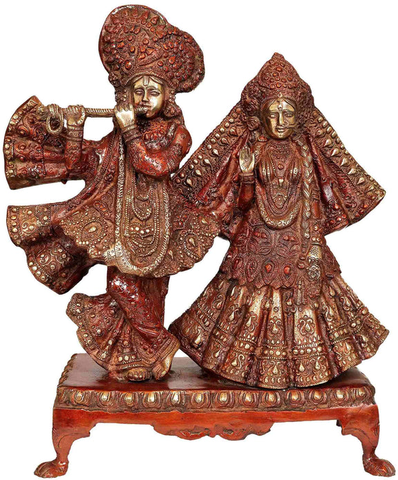 Handcrafted Brass Statue of Radha Krishna 17 INCHES