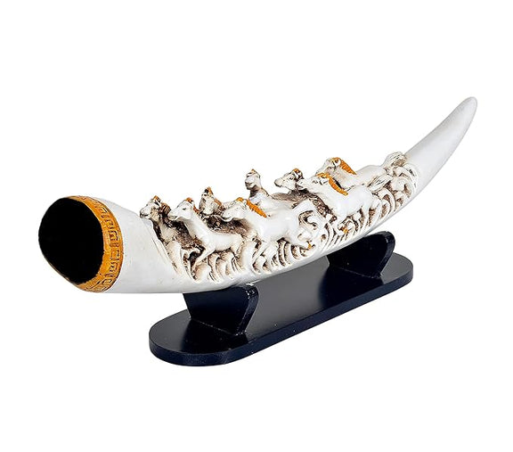 Add a whimsical touch to your home decor with our Handcrafted Decorative Seven Running Horse Tusk Showpiece! Made of high-quality resin, this 16.5 inch tusk features intricate details and a captivating design of seven running horses. Display it in your living room or bedroom for a unique and eye-catching accent piece.