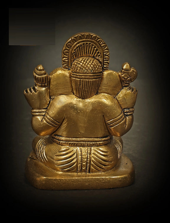 Handmade brass sculpture of a small Ganesha in Shiva Sadhana holding a Shiva Linga 2 Inches