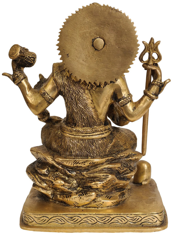 Handmade Brass Statue of Four-Armed Lord Shiva with Shiva Linga and Kamandalu 8 Inches