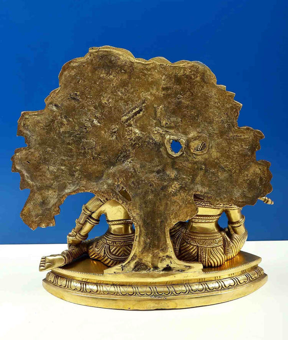 Handmade Brass Statue of Krishna Playing Flute for Radha 12 inches
