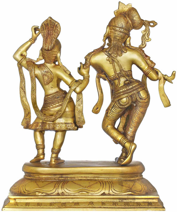 Handmade Brass Statue of Tribhang Murari (Krishna) Watching Radha Dance 17 Inches