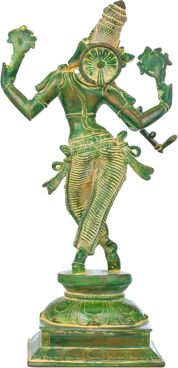 Handmade Green Chala Brass Statue Depicting Lord Krishna's Cosmic Form, the Eighth Incarnation of Vishnu 14 inches