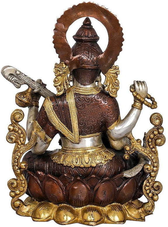 Handmade Kamalasana Goddess Saraswati in Brass 12 inches