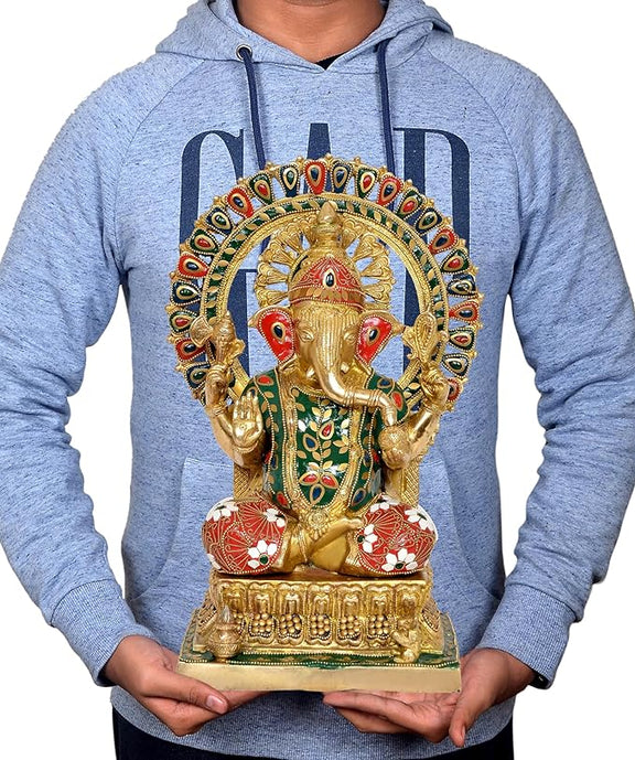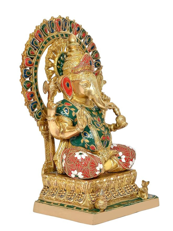 Brass Lord Ganesha Ganpati Idol Vinayak Religious Statue Brass Murti Multicolor (Height 14 Inch)