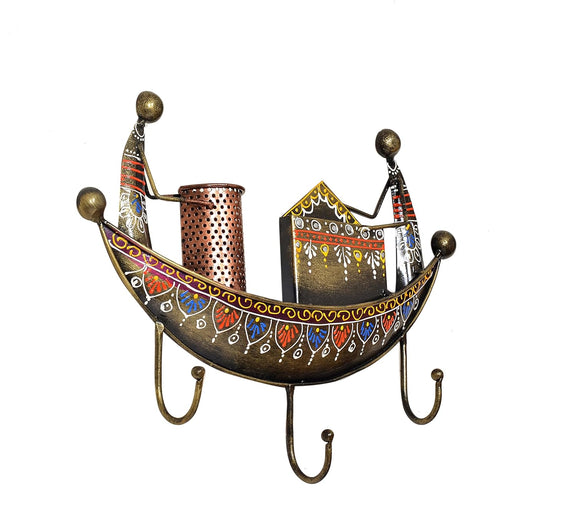 Iron Boat Key Holder and Pen Stand Wall Hanging (Height: 9 Inch)