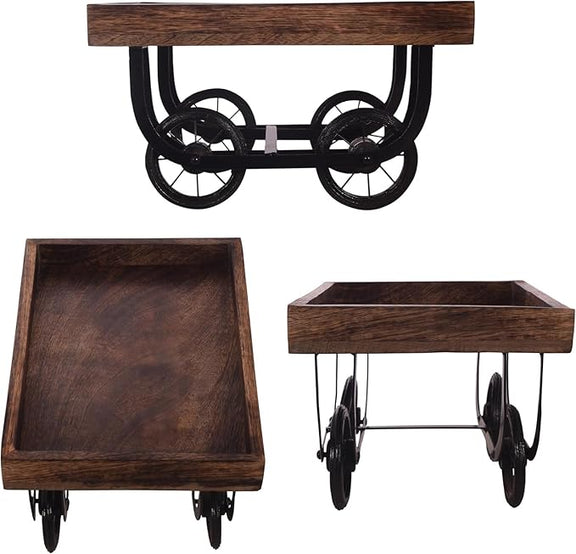 Iron Trolley Serving Tray with Wooden Top (Height : 6 Inches)
