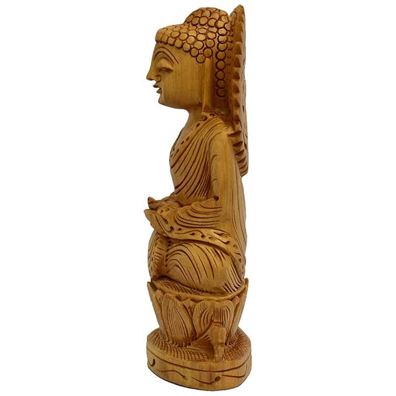 Kadamba Wood Carved Buddha Decorative Showpiece I Lucky Idol I Religious Height 6 Inch