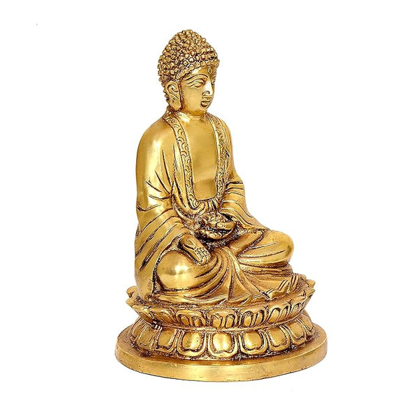 Large Brass Buddha Lotus Sitting Statue Buddhist Sculpture (Height: 8 Inches)