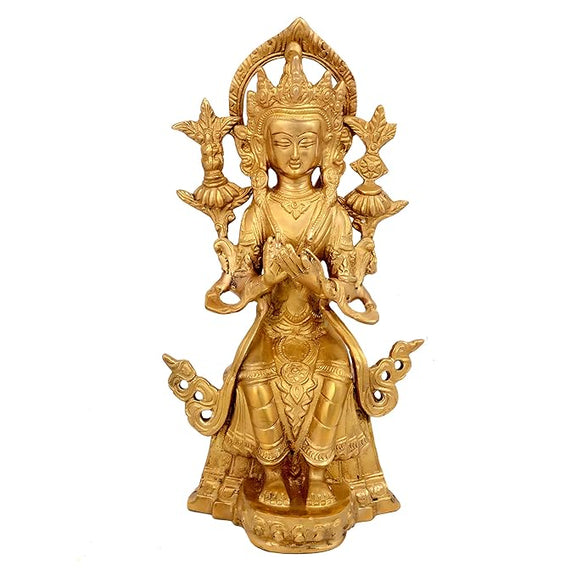 Experience ultimate serenity with our Large Crown Brass Buddha Statue, depicting the Tibetan Buddhist deity Maitreya. Handcrafted with intricate details, this sitting Buddha on a throne exudes luxury and elegance. Let its presence bring inner peace and prosperity to your space. Elevate your decor with this premium sculpture.
