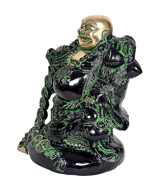 Brass Laughing Buddha Statue for good luck (Height: 11 Inches)