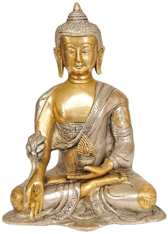 Lord Buddha Decorative Statue Idol Murti Sitting Pose - (Brass, Height 8")