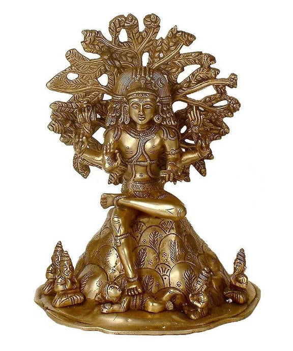 Bring the divine energy of Lord Dakshinamurti Shiva into your space with this beautifully handcrafted brass sculpture. Standing at 11 inches tall, this statue is intricately designed to capture the powerful presence and grace of Shiva. Add a touch of spirituality and reverence to your home or office.