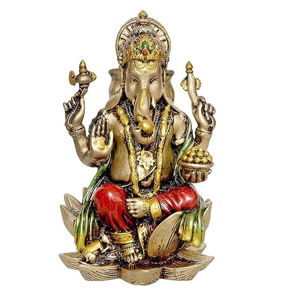 - Elevate your home decor with this exquisite Lord Ganesha idol made of premium polyresin material. Standing proudly at 7.5 inches tall, this intricately crafted masterpiece exudes luxury and sophistication. Let the blessings of the divine deity bring prosperity and auspiciousness into your space.