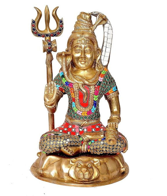 Lord Shiv ji Brass Statue Bhole Nath Idol Lord Shiva God of Destroying Evil, Ignorance, and Death (Height: 13 Inches) (Blessing Sitting Pose)