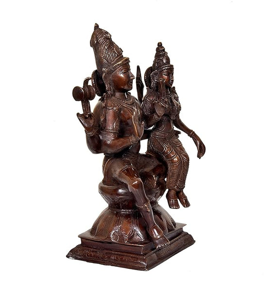 Brass Lord Shiva and Parvati Uma-Maheshwara Statue (Height: 15.2 Inches)