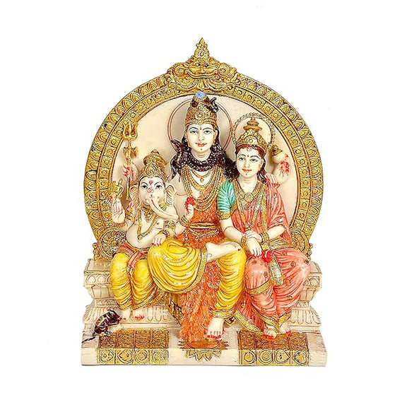 Lord Shiva Family Parivar Idol Resin Hindu God Figurine Ganesh, Parvati Shiv Statue Decor Gifts Bonded Bronze Height 8.2 Inch