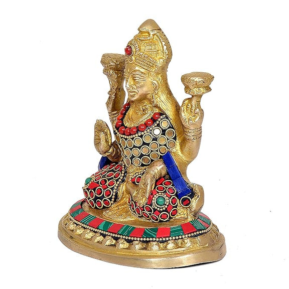 Maa Lakshmi Murti Idol Brass Multicolor Statue for Pooja, Height : 5.5 inches