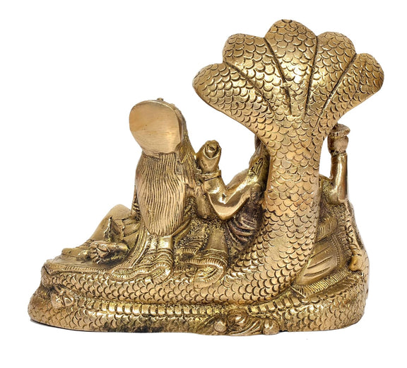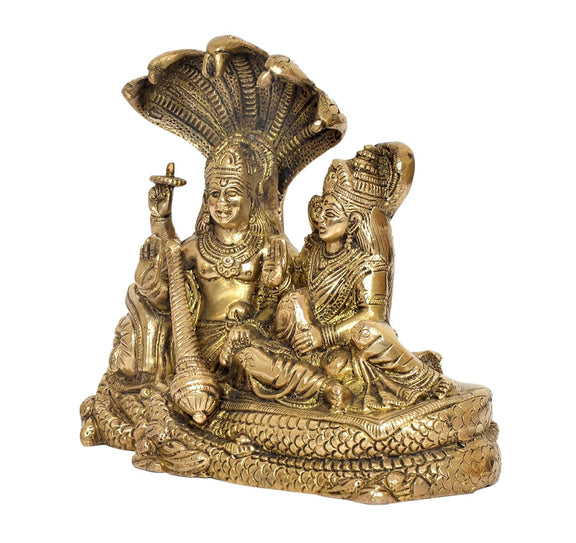 Maa Lakshmi with Lord Vishnu On Sheshnag Idol Statue for Home Mandir Temple Office Decor - (Brass, Height 6.5 Inch)