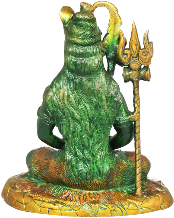 Mahayogi Shiva Amazing Henna Touch Brass Idol Seated on Tigerskin | Handmade Statue 10 Inches