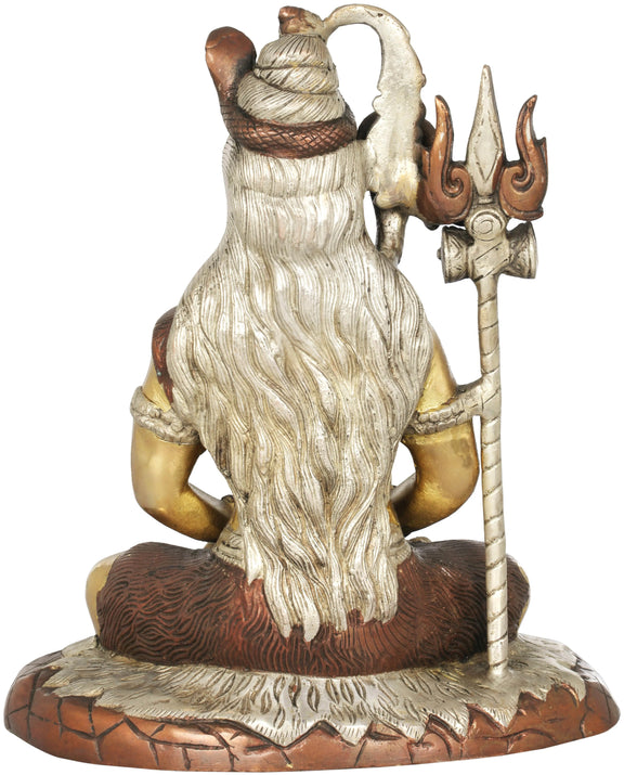 Mahayogi Shiva Brown silver gold Brass Idol Seated on Tigerskin | Handmade Statue 10 Inches