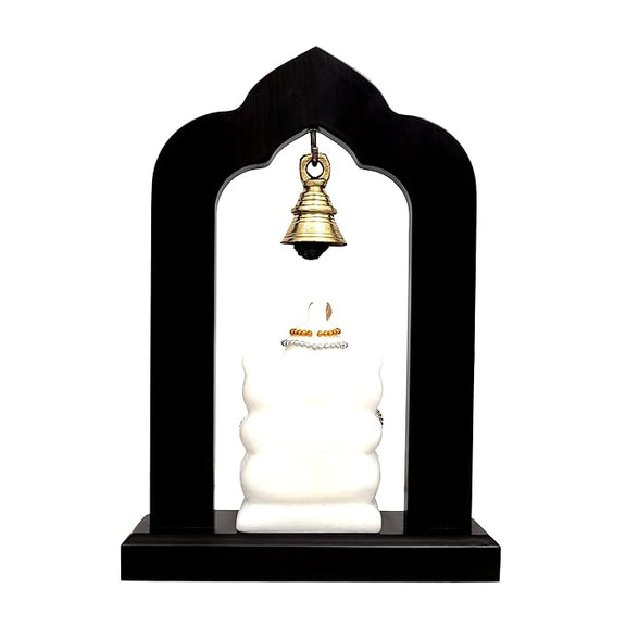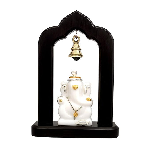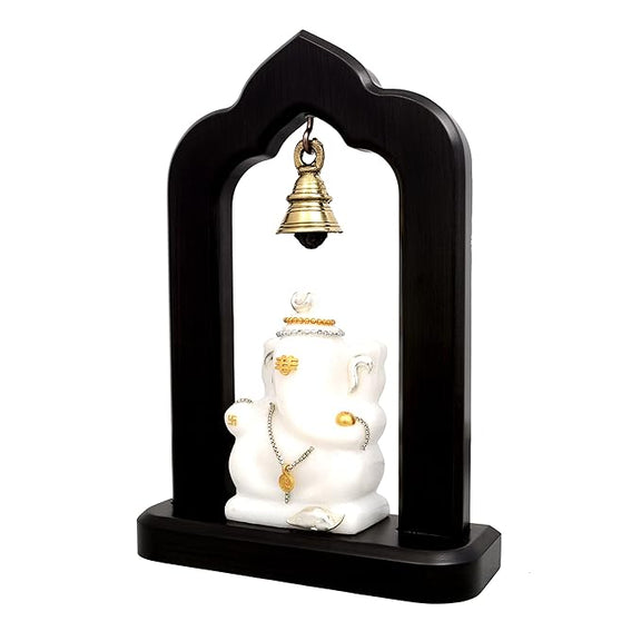 Marble Lord Ganesha Idol Statue with Brass Hanging Bells Wooden Base Ganesha Idols for Home Living Room Office Decor Gifts Height 9 Inch