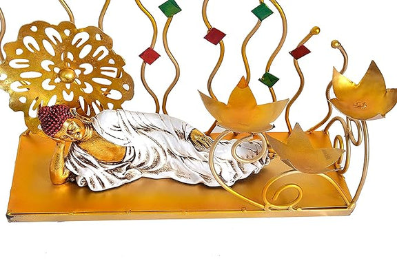 Metal Reclining Buddha Table Decorative Showpiece (Height: 21 Inches)