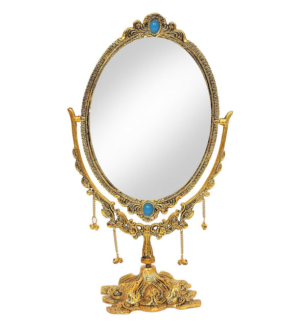 Metal Double Side Table Mirror Gold Plated Frame for Home Decor Room Table Showpiece (Height 8 Inch)