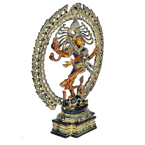Introducing Natraj Brass Statue Nataraja, the King of Dancers, showcasing the majestic form of God Shiva. Perfect for temple mandirs and as a showpiece for home decor, this 20-inch statue exudes elegance and luxury. Bring a touch of sophistication to your pooja rituals or impress your guests with this exclusive gift.
