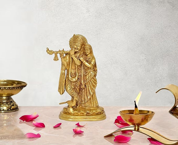 Radha Krishna Murti Statue Idol Brass Statue for Home Decor, (Height .8.5 Inch)