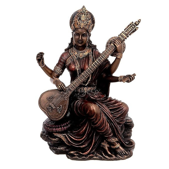 Resin Saraswati Idol Hindu Goddess of Knowledge Music & Art (14.5 Cm)