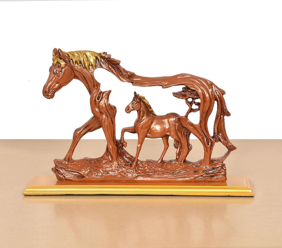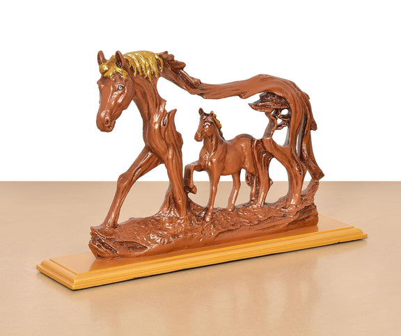 Inspire your space with this captivating Resin Horse with Baby Horse showpiece! Standing at 8.5 inches, this bronze-hued beauty adds a touch of elegance to any room. Handcrafted with intricate details and quality resin, it's the perfect addition to showcase your love for horses and elevate your home decor.