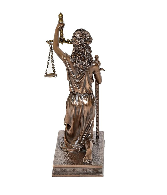 Resin Lady Justice Kneeling Holding Scale and Sword Murti Figurine Sculpture Office Home Court Height 6 Inch