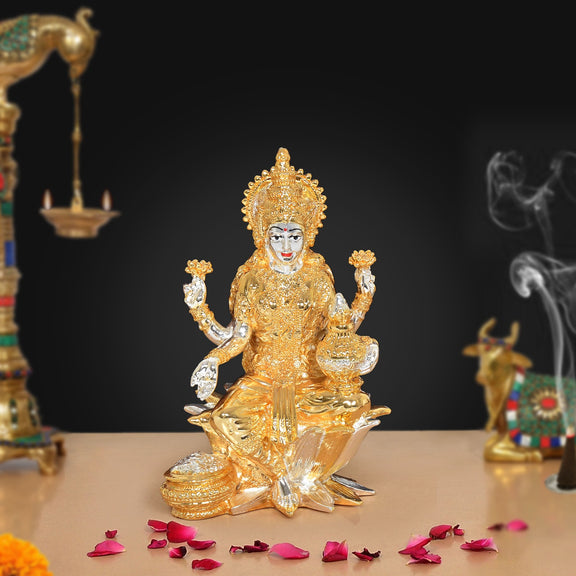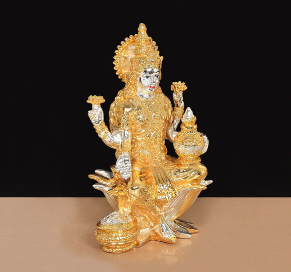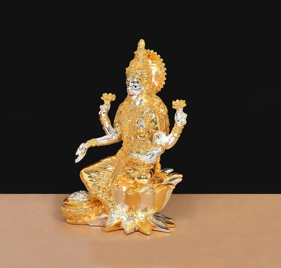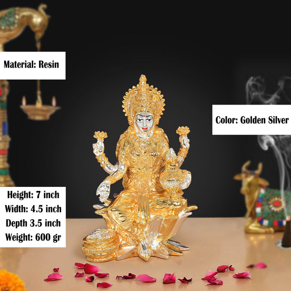 Resin Lakshmi Idol with Plating of golden silver (Height: 7 Inch)