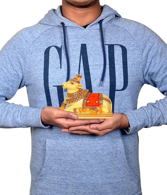 Introducing our Resin Shiv Nandi Idol Statue, a must-have for any Shiv temple or devotee. This stunning multicoloured Nandi cow idol stands at 4 inches tall and is crafted with high-quality resin, ensuring durability and longevity. Bring a touch of divinity and style to your home or temple with this exquisite showpiece.