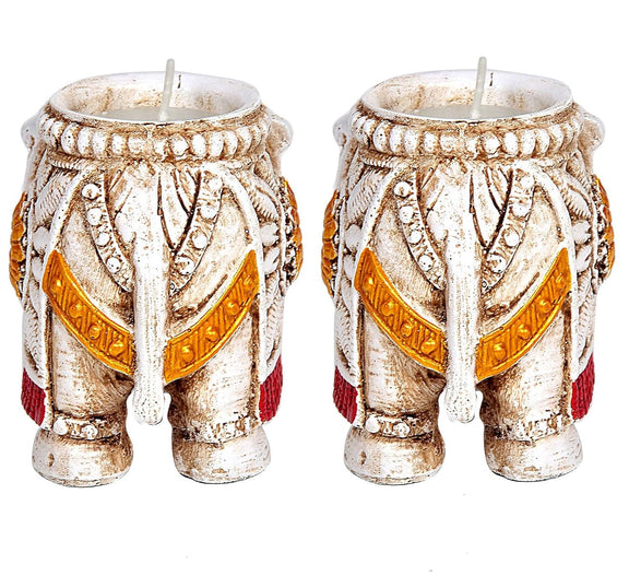 Resin Tea Light Candle Holder Elephant 2 pcs Set (Height: 3.5 Inches)