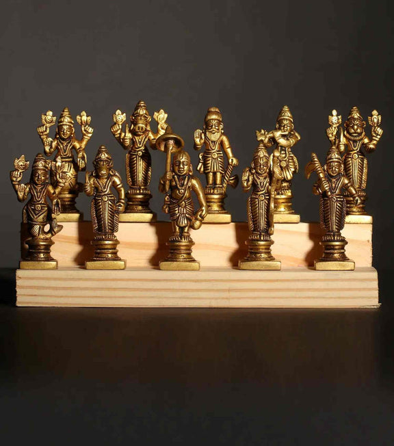 Set of Ten Small Brass Dashavatara Idols of Lord Vishnu 3 inches