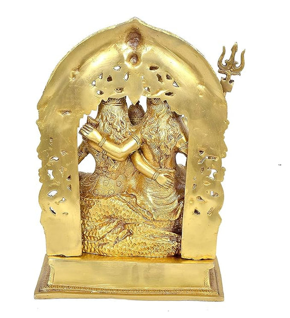 Elevate your home decor with the exquisite Shiv Parivar Brass Pooja Idol. Handcrafted from premium brass, this 12 inch idol of Lord Shiva, Parvati, and Ganesh exudes elegance and invokes blessings of good luck, success, and prosperity. Bring home this symbol of divine love and add a touch of luxury to your space.