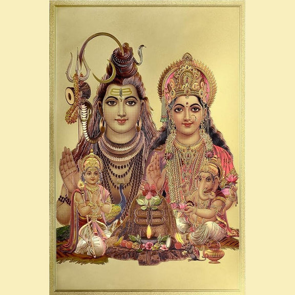 Shiv Parivar Idol Shiv Family Poster Foil Plated Length 18 Inch X Width 12 Inch