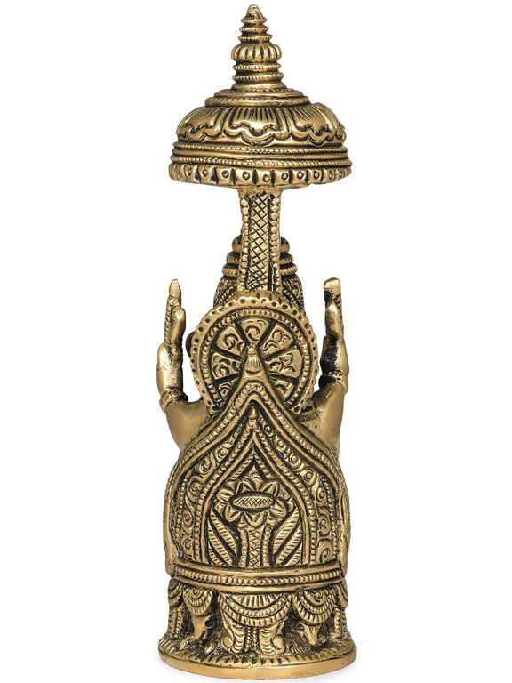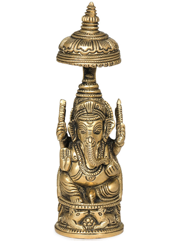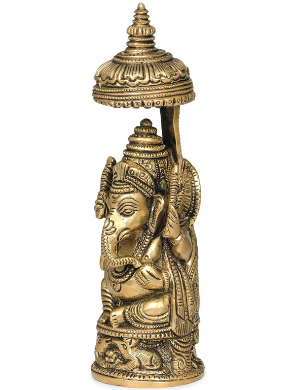 Small Brass Idol of Ganesha with Carved Umbrella 5 inches